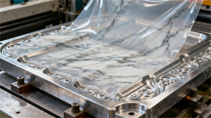 У погледу примене процеса,блистер филмможе се чврсто залепити за површину уобичајених плоча за намештај као што су плоча за густину и шперплоча кроз професионалну машину за вакуумско ламинирање, постижући бешавно покривање. Дакле, шта је процес вакуумског формирања блистер филма?
